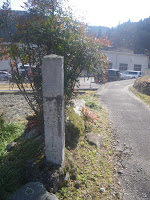 また、道を隔てた畑の脇に小さな道標が立つ。ここに二つも道標が立つ必要もないと思うが、「えひめの記憶」に拠ればふたつの道標の示す里程が異なり、小さな道標は農祖峠入口にあったものが移されたのでは、とする。