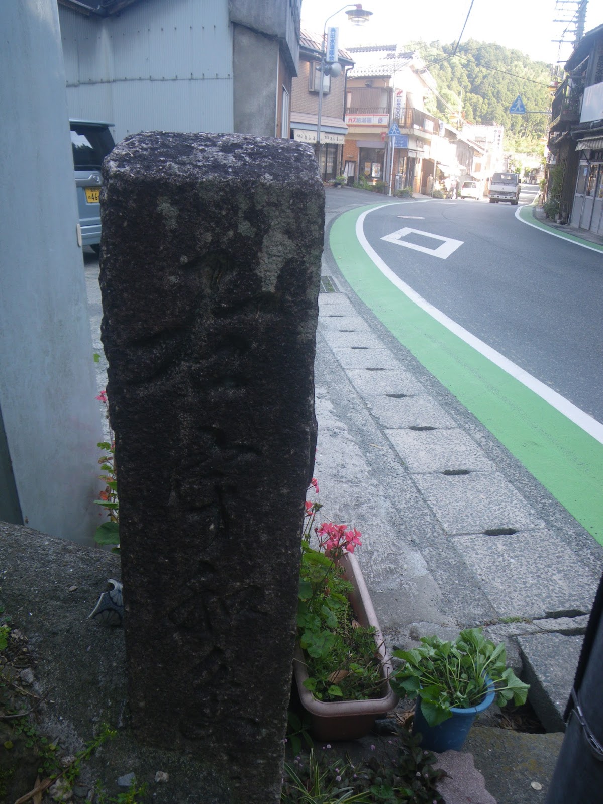 しかし、大正2年(1913)に肱川橋が完成すると、遍路はこの新しい橋を渡るようになった。そのため中町三丁目から中町二丁目を通って国道56号に合流する中町一丁目の入ロに、大正4年建立の「すがわさんへ十三里 へんろ道」と刻んだ道標があったとされるが、現在は行方不明になっている」とある。