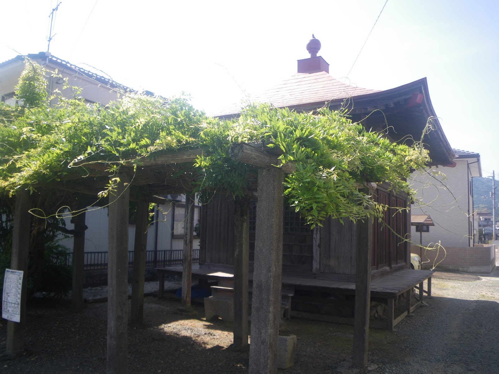 トラックの風圧に怖い思いをしながら国道56号を進むと二軒茶茶屋の集落。国道56号から右へと集落を抜ける道がある。旧国道であろうと右に折れると、集落が切れた辺りに「弘法大師尊」の額のかかるお堂があった。大師堂であろう。