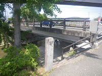 この橋のたもとにあった二基の道標が先ほど見たものだろう。この道標も成り行きでみつかったが、案内にある「帝京第五高校の敷地を斜めに横切る」との記述が地図と合わず結構悩んだ。昔は校舎の南にあるグランド辺りを道が通っていたのだろか。斜めに突き進んだ箇所に昔の遍路道の面影を残す細路とその先に高柳橋があった。