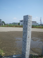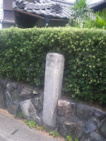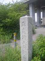 本来の里程標は、上下に分かれて折れているようで、上半分は先般三坂峠から下るとき、御坂川に架かる窪野橋手前の藪の中に「松山札の辻より四里」と書かれた里程標があったが、その脇に古い石碑があり、それが三里の里程標の上半分であったように思う。