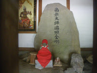 参道を進むと左手に鐘楼。鐘楼の参道逆側には「お遍路の誰もが持てる不仕合わせ」と刻まれた句碑がある。案内によると、明治32年(1899)に松山に生まれ高野山金剛峯寺第406世座主となった高僧の詠んだ句。高浜虚子と知己を得、師事。子供がむなしくなり、四国巡礼の旅に出たとき、「遍路の思いにはそれそれの想いと影があることを想いよんだもの」とあった。俳号森白像。