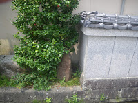 更に少し北に進むと民家の生垣に隠れるように自然石の道標がある。「左 遍路道」と刻まれているようだ。「えひめの記憶」では、逆打巡拝の道標とする。