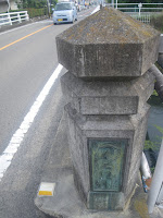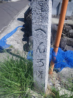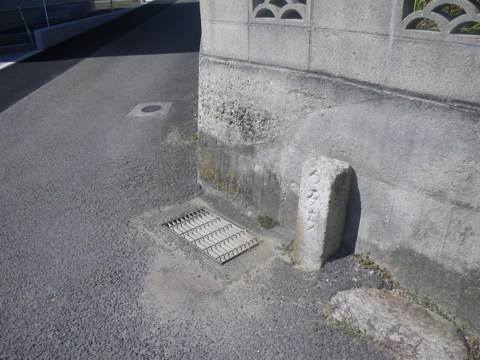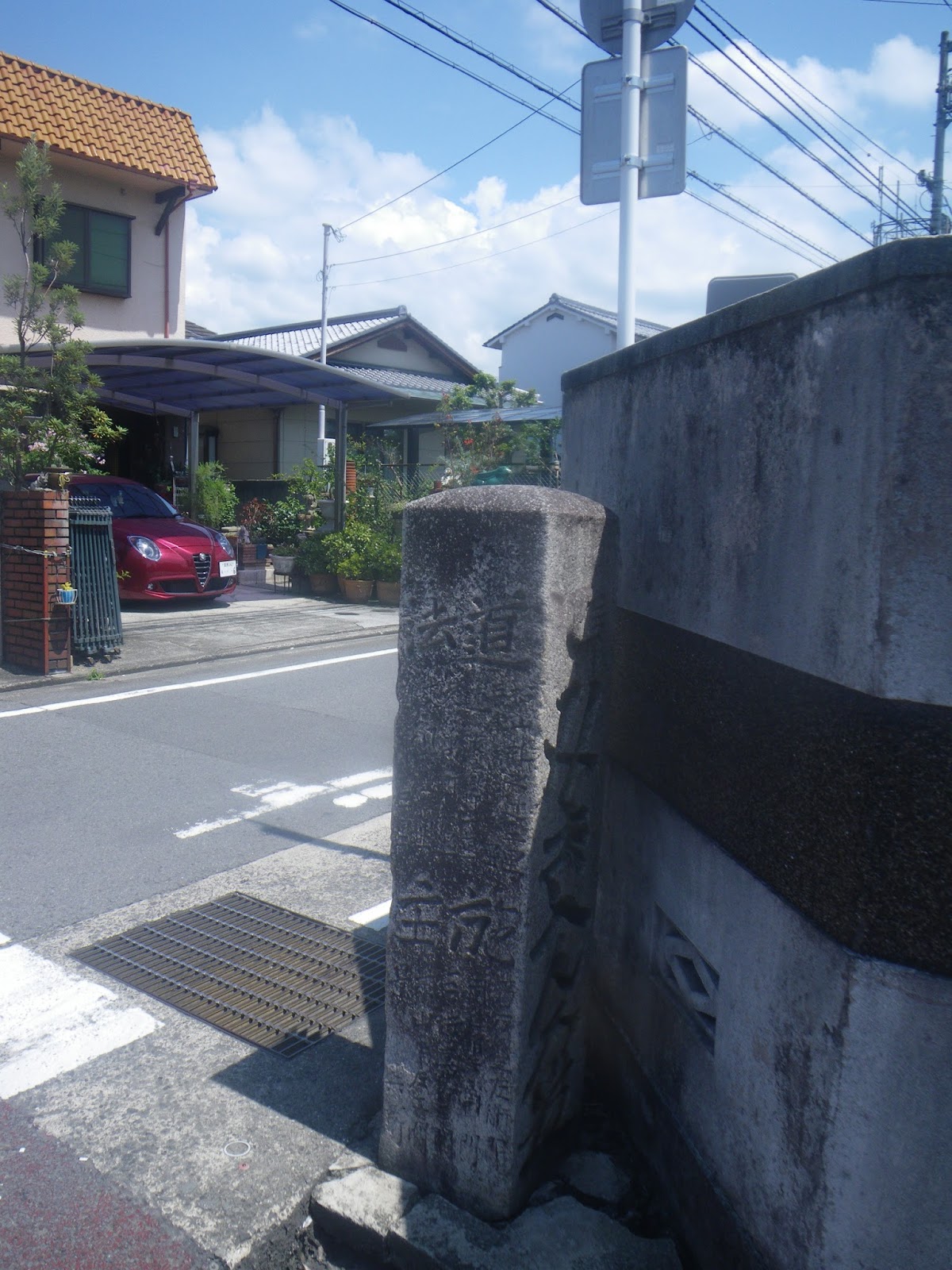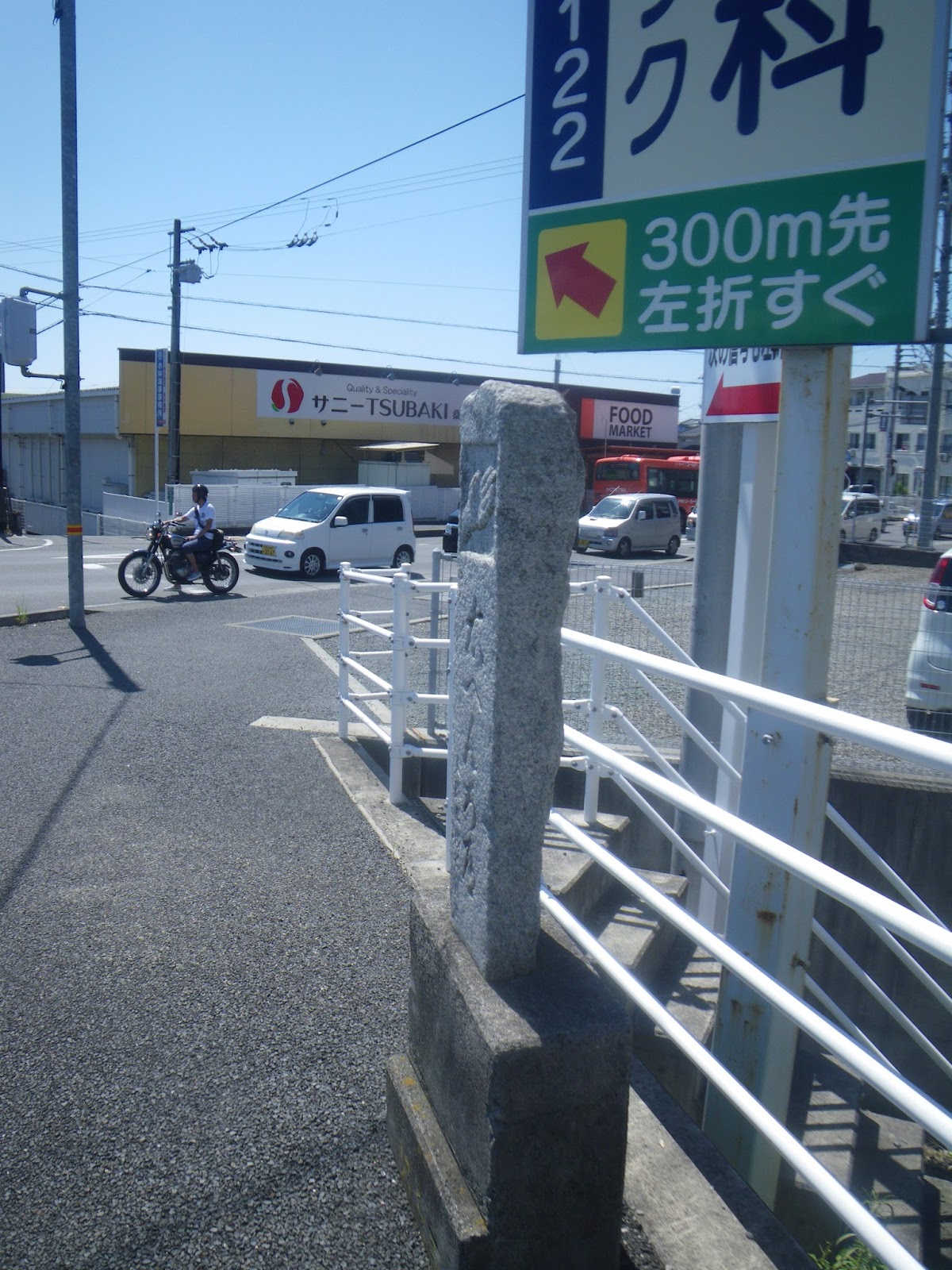 なお、椿湯の西約40mのところにかつて木賃宿「筑前屋」があり、その前に1本の道標が昭和47年(1972)まで立っていたという。これには「(手印)太山寺道/(梵字(ぼんじ))為三界萬霊」と刻字され、筑前屋の前を西に進み太山寺へ向かうよう指示していたという。道は筑前屋の右脇を北に進んで左折、大川沿いの遍路道に向かっていた。この道が大川端に出る所は、前述の清水川沿いの遍路道が出てくる天神橋付近よりもやや上手であったようである(「愛媛の記憶」)」。大川、天神橋は後ほどメモする。