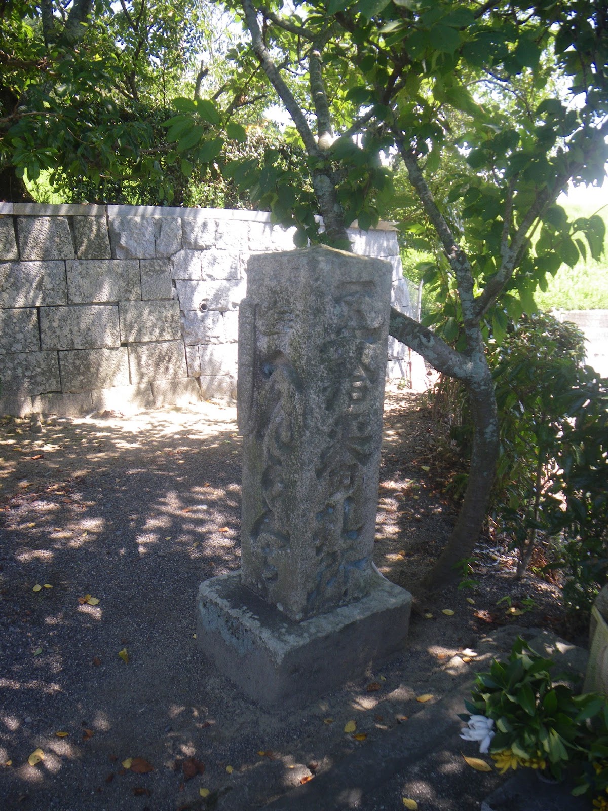 時宗の開祖一遍は河野通広の第二子として延応元〈1239〉年に生まれた。幼くして仏門に入り、文永11〈1239〉年時宗を開き、翌年熊野の地で神勅を受けて「南無阿弥陀仏」と記した賦算を始めた。弘安二年(1279)には信濃国佐久郡で念仏踊りをはじめた。その後正応2(1289)年神戸真光寺で死すまで全国各地を念仏遊行し一所不在、捨聖、遊行上人と尊宗された。「一遍上人御誕生旧跡の碑」は河野一族の得能通綱が建立したと伝えられる」とあった。