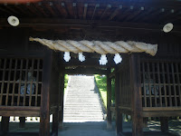 なんとなく悲しい物語の多い義安寺を離れ、県道を少し西に進み、地蔵堂のあるT字路を右折し坂を上ると伊佐爾波神社参道口に。右手は拝殿に上る石段、左手は西に下る参道となっている。