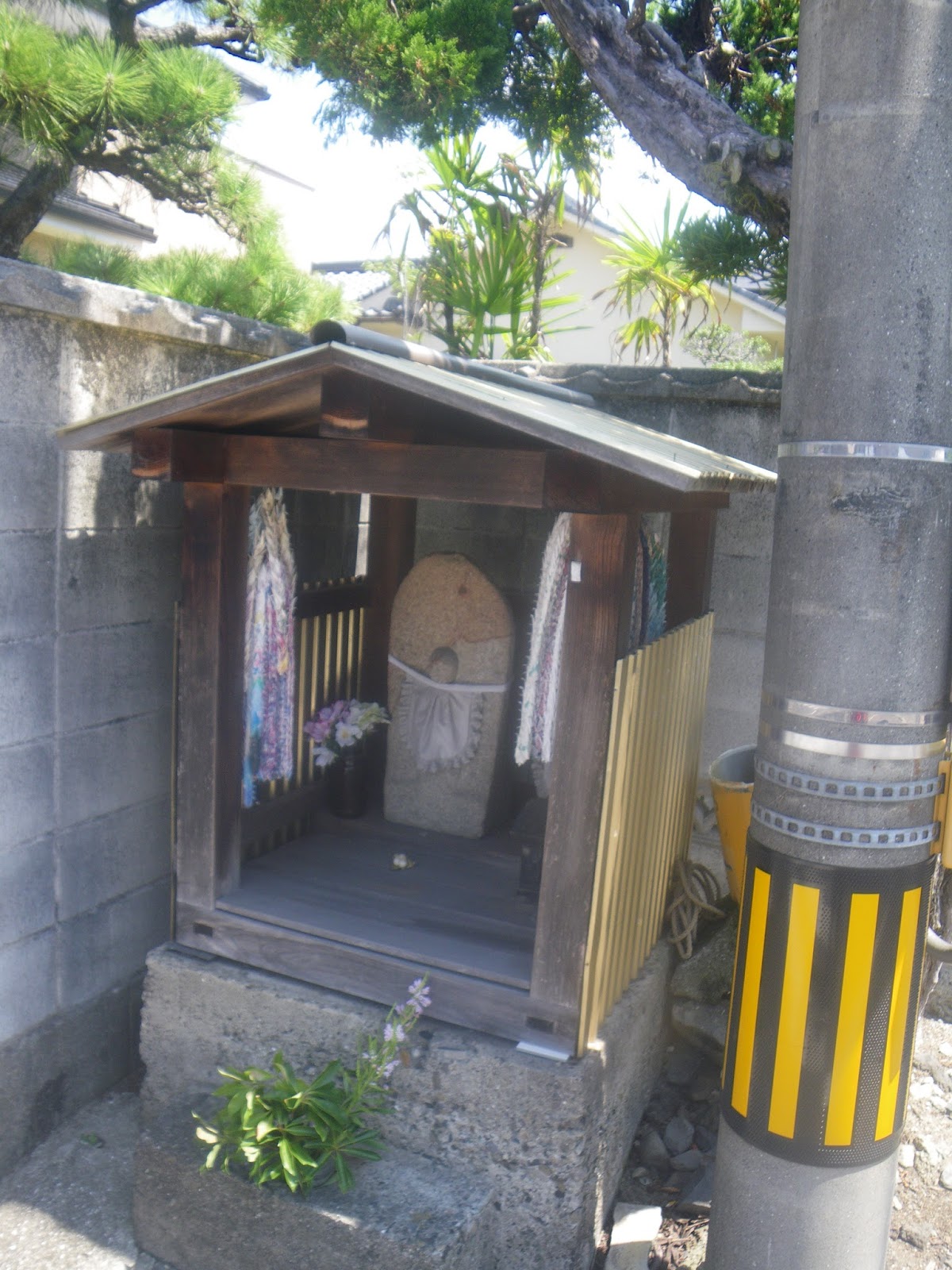 県道を行く遍路道は、義安寺前から100m余進んだ所にある地蔵堂で右折し、神社石段下に至る。