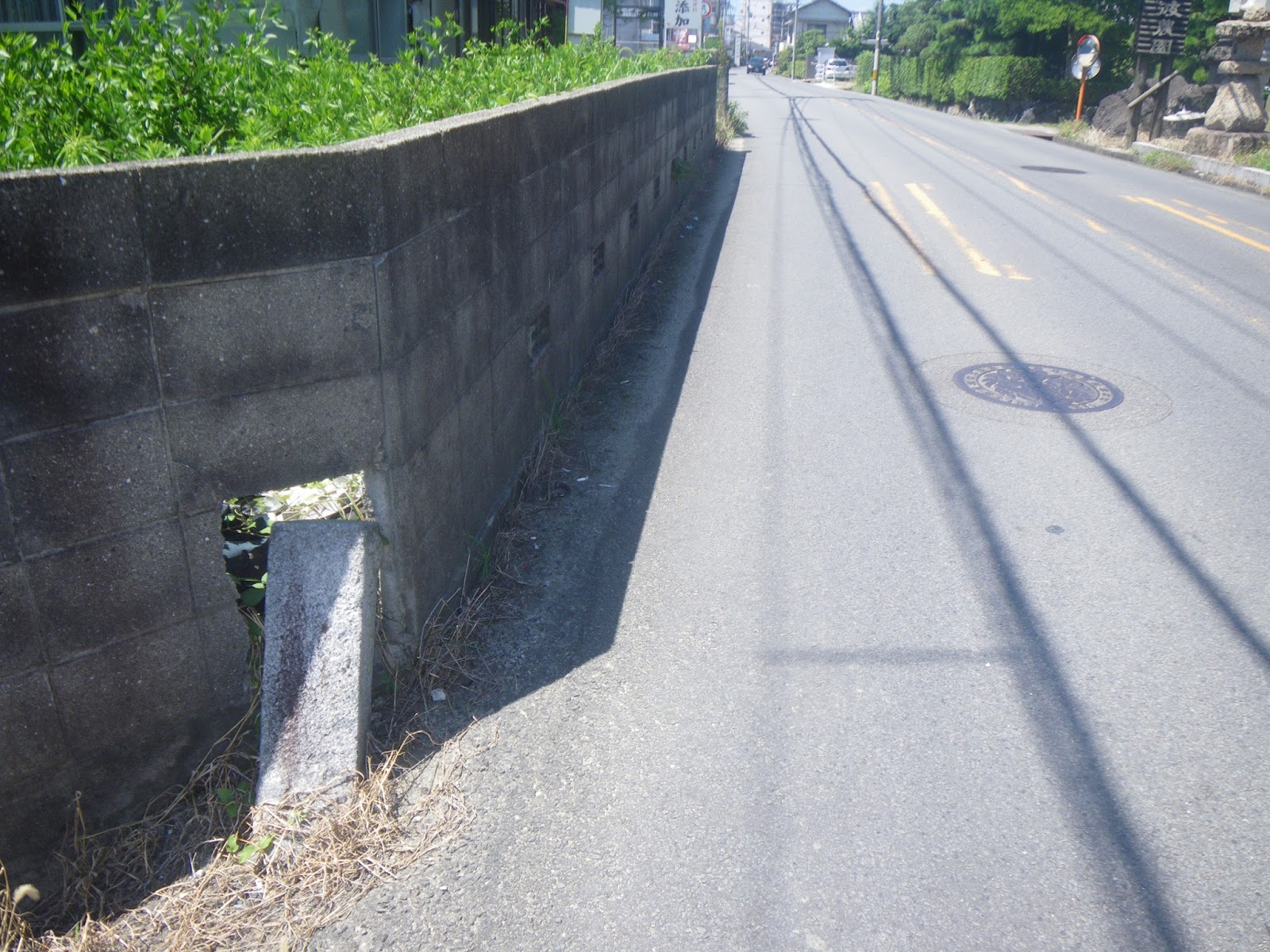 三差路道標の道標から県道を離れ、少し西に進むと、ブロック塀の角に「ろみち」と上部の欠けた道標があった。