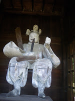 回廊形式の参道手前に空海に許し、教えを乞い願う衛門三郎の像。遍路発心譚で知られる衛門三郎の像はどれも同じように思える。何時ごろの作なのだろう。