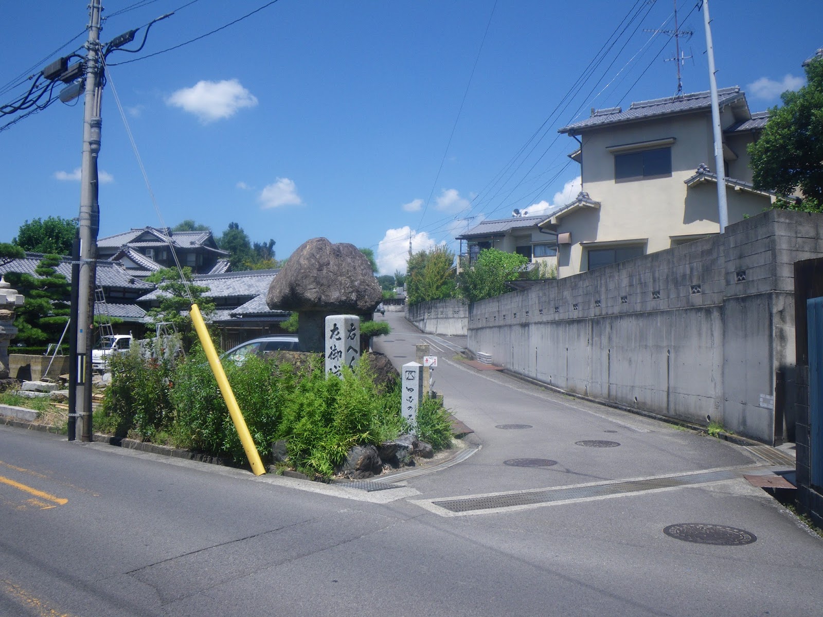 高井公園手前の記述と西林寺の北100mは結構離れており、はっきりした場所は特定できず、それらしき辺りを彷徨うが、自宅庭に保存されているという道標は確認できなかった。