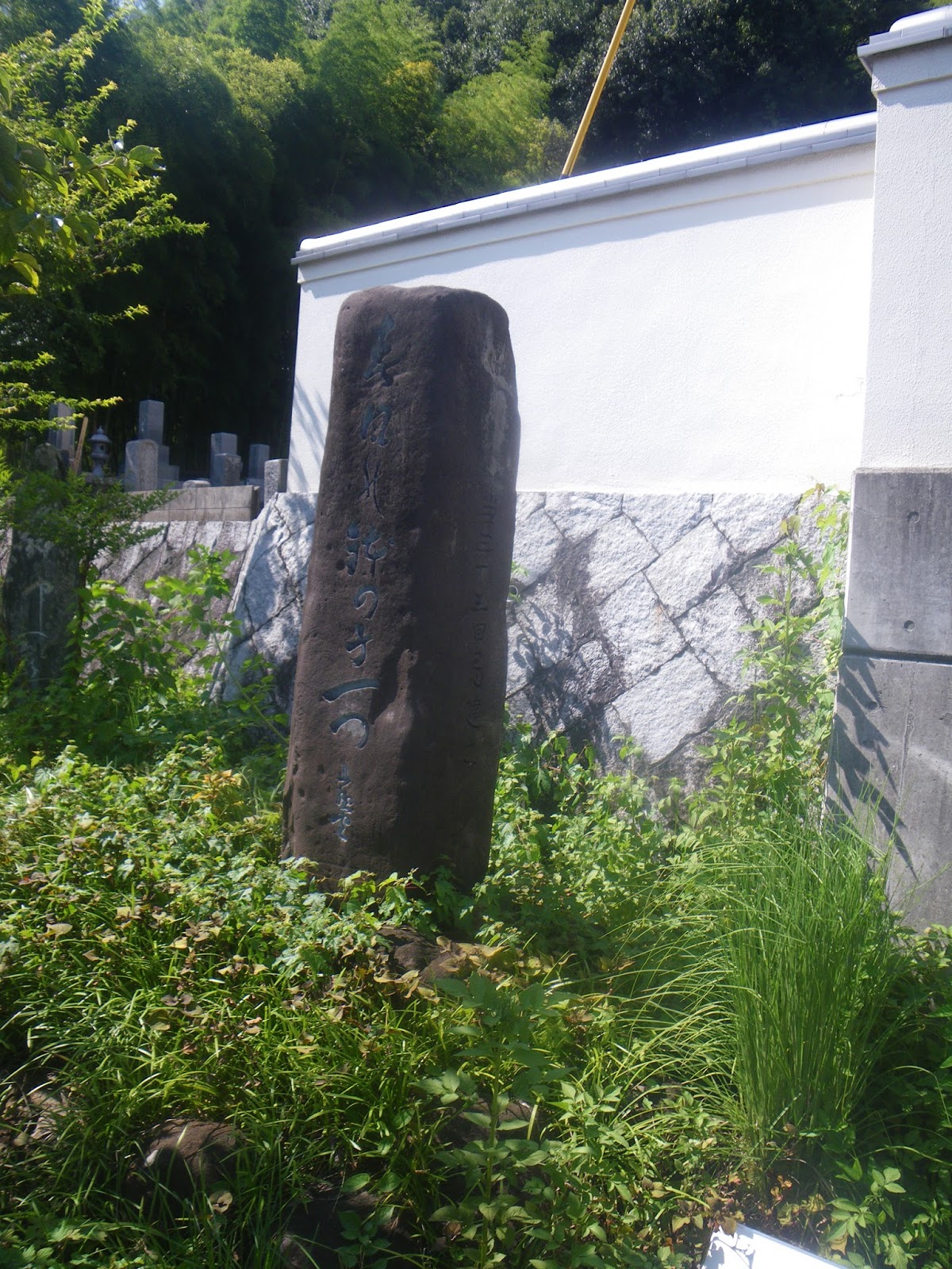 県道187号から斜めにお寺様に上る参道入口に道標が立つ。常の道標とは異なり、手印とへんろ道とともに、仏像が浮き彫りにされ、先祖代々菩提とか俗名おきよ菩提、といった文字も刻まれ供養塔を兼ねているようだ。
