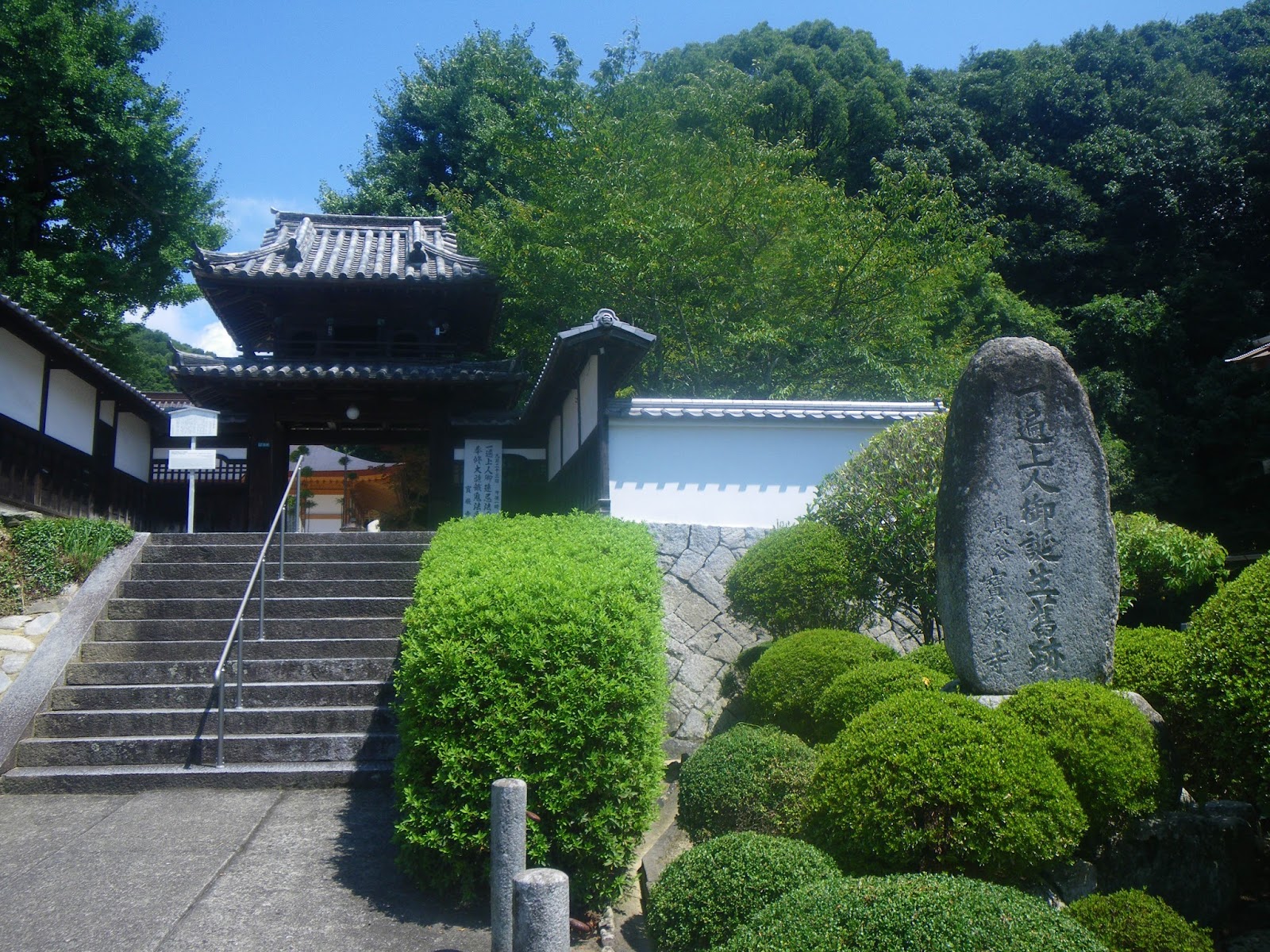 河野家断絶の時の河野家当主は河野通道(みちなお)であるが、四国攻めの小早川隆景軍と激しく戦ったといった記録もなく、湯築城近くに隠居させられている。宗家とは関係なく、一族の滅亡を嘆き悲しんだ一族、譜代の老臣達が自刃した、ということだろう。本堂東に「誓いの泉」が、今も残っている、というが見逃した。「山門に螢逃げこむしまり哉」と子規が詠む。