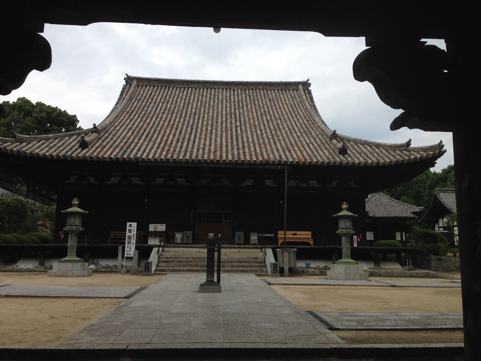 楼門をくぐると正面に堂々した国宝の本堂が見える。案内には、「桁行七間、梁間九間、一重、入母屋造、二軒、本瓦葺で、全国屈指の規模を誇る密教寺院本堂である。柱、梁などの木組も大きく豪放であるとともに、和洋を基本としながら虹梁、挿脛木等に禅宗様や大仏様の仕様が使われるなど、三建築様式の融合した調和美がある。