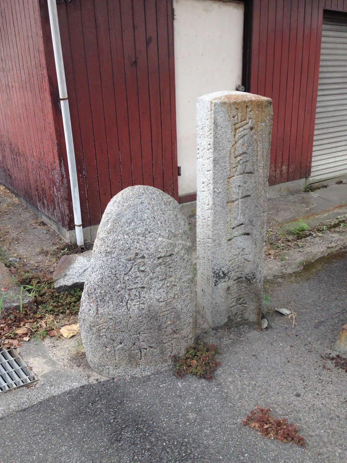 「えひめの記憶」には「旧門屋の前に道標(が立っていて、前述の山越えの高浜道を案内している」とある。どれが旧門屋かわからないが、参道から右手に道が分岐する角に道標が立っていた。