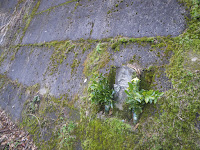 途中、県道歩きばかりは味気ないと、馬返しから先、今は誰も歩かず踏み跡もない旧遍路道を辿ろうとしたのだが、これが予想以上の荒れ具合。成り行きで進み、いくつかの地蔵丁石には偶然出合ったのだが、ロープでもなければ少々危険と判断し、一旦県道に下りる。