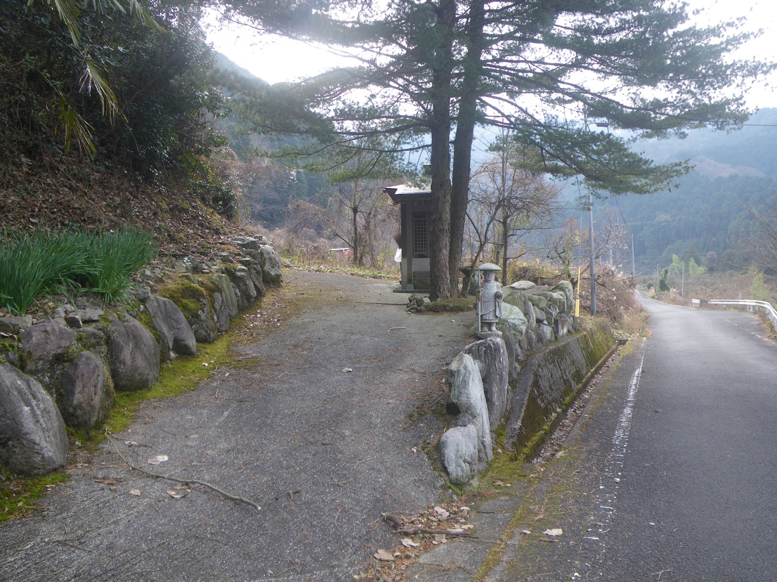 現在では湯浪に進むには県道147号を進むのが一般的ではあるが、「えひめの記憶」には、この先の遍路道として「左右に柿畑が広がる道を南進すると、県道は左に大きくカーブする。その手前で遍路道は分岐し、柿畑の中の道に入っていく。