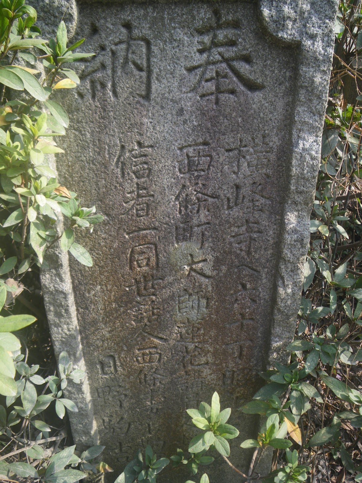 境内の西隅に「横峯遥拝石」が立つ。また、円柱道標は明治廿年と刻まれているようである。