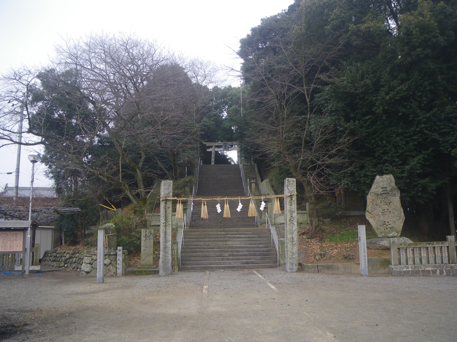 三嶋神社にお参り。県道11号を松山方面から桜三里の山地を抜け、周桑平野を東に進むとき、四国山地から平野部に突き出した尾根筋が眼前に現れ、しばらくその尾根筋を右に見ながら走ることになる。