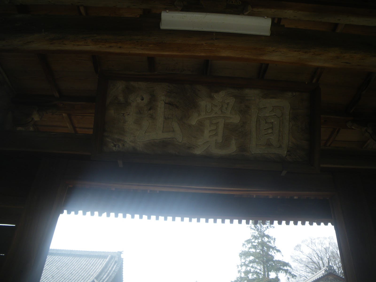 山門正面の『圓覚山』の扁額は、一柳直卿公(なおあきら;頼徳)御真筆の奉納額です。西条市の文化財(工芸品)の指定を受けています」とある。