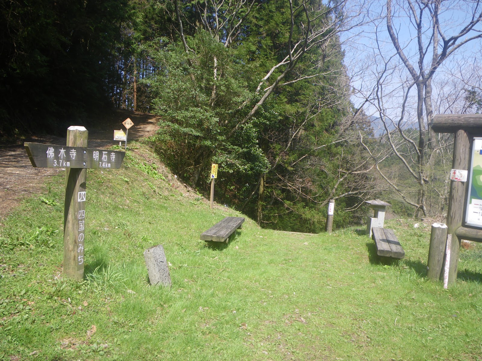 県道31号合流手前の沢に石橋が架かり、その手前山側には道標が立つ。「えひめの記憶」に拠れば、「この道標には、石橋の寄付をした16名の名前が刻まれているが、「仏木寺一里半」「明石寺一里半」の文字も見え、ここが両札所のちょうど中間地点であることを示している」とある。