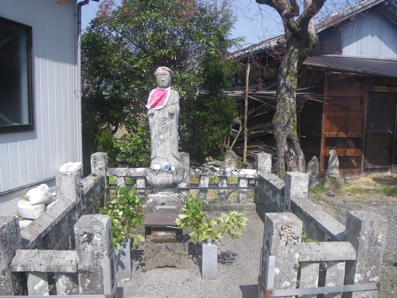 県道31号を肱川(上流部を宇和川とも)に架かる歯長橋まで進む。橋の手前、道の右手に地蔵堂が建つ。「えひめの記憶」には「橋の手前の山際には巨岩があった。そこには石仏を祀(まつ)ったお堂があり、お堂のそばには小さな遍路墓らしき墓石ももたせかけられていたという。しかし、その巨岩は、平成12年の道路拡張工事で撤去され、現在は道を挟んだ向かい側にその石仏を祀る新しい地蔵堂が建てられている」とあった。