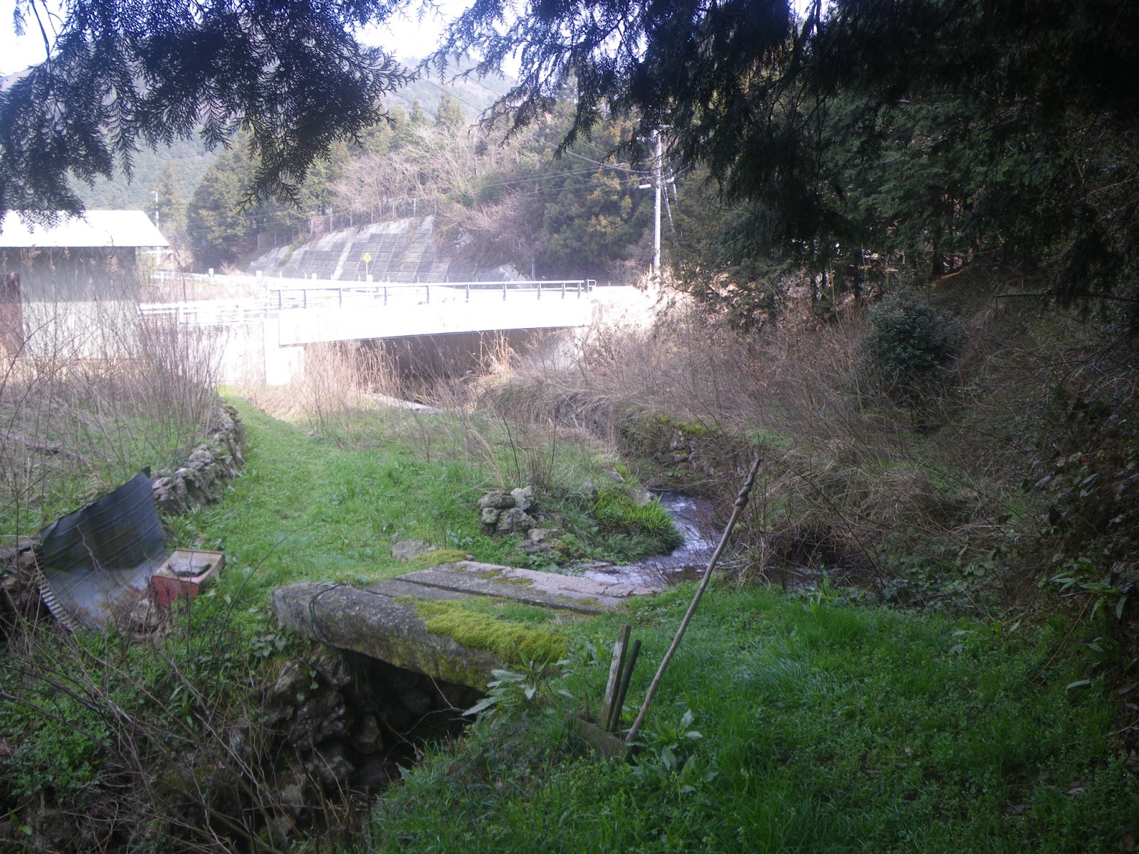 少し進むと西谷橋のひとつ上流に架かる歯長橋から西に分かれる舗装された道筋にあたる。その道に乗り換え左折し西に向かう。