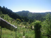 「新道のヒララ」は作業道を上る方向を指す。前述「水の本」に「新道のヒララへ約35分」とあったが、最初の開閉フェンスがあった辺りが水の本からおおよそ30分ほど。往路で二番目のフェンスの街道案内を見落としビニールハウスに沿った作業道を進むと棚田などもあり、里の気配がした。根拠はないが、この辺りが「新道のヒララ」なのだろうか。単なる妄想。根拠なし。