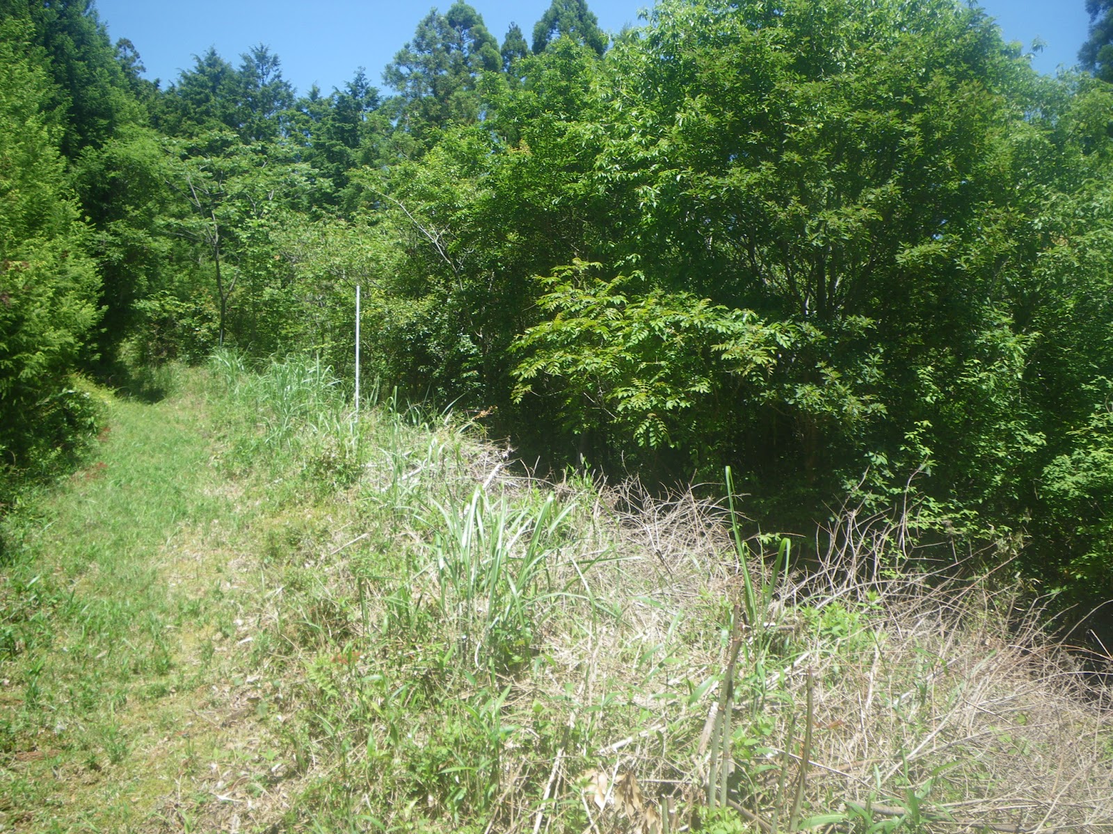 街道は作業道から下りて直ぐ右手にある開閉フェンスを開けて進むことになる。作業道を下りた道は左手に続いているので注意が必要。開閉フェンスの先は背丈より高いブッシュの中を進むことになる。