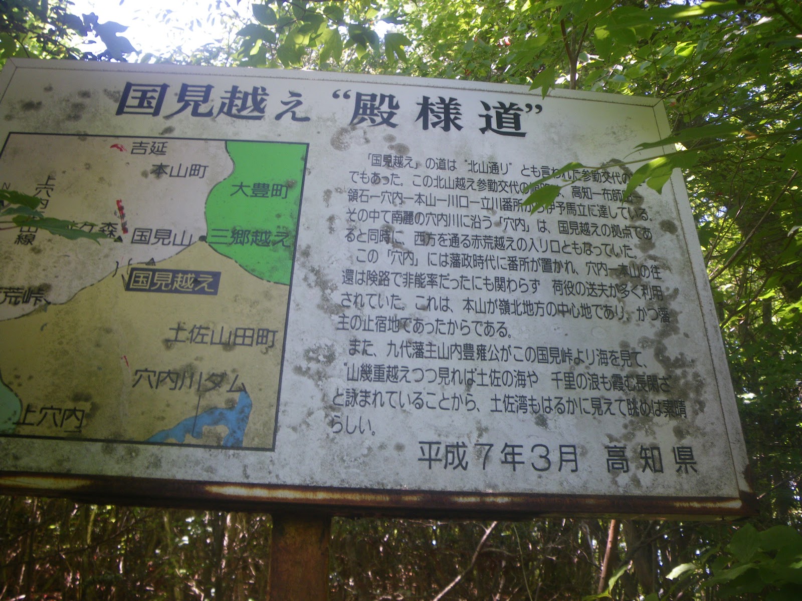 初日の上り3時間半、下り3時間として、国見越えには6時半ほどの時間がかかった。当初は土佐北街道の峠越えはこれで終わりとは思っていたのだが、国見越え南に権若(こんやく)峠があることがわかった。この峠を越えれば土佐北街道の峠越えはすべてクリアとなる。ということで、次回は権若峠越えに向かう。