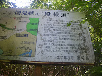 吉延からしばし舗装された道を進み、舗装が切れるあたりに「国見山登山口」の標識があった。その傍には「参勤交代道」の標識もあり、そこが参勤交代道の下山口であろうと車をデポし、杖ヶ森の巻道にある吉延下山口ルート標識を繋ぎピストンでデポ地に戻った。歩く前は、遍路道用語にある「順打ち」の3倍困難とされる「逆打ち」で進むわけであり、少々難儀なことになろうかと思っていたのだが、標識がしっかり整備されており道迷いは杞憂に終わった。誠に有難かった。
