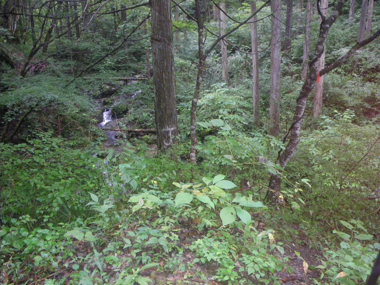 作業道を戻り熊倉沢林道の熊倉沢右俣・左俣分岐点に戻る。右俣に沿って続く林道を少し上り、適当な場所をみつけ着替えを済ませ熊倉沢林道を戻る。