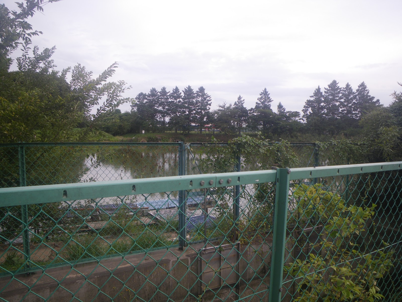 暗渠は南平野排水機場の南を進む。南平野排水機場の西には南平野調整池が見える。地域の排水対策として20mほど掘り下げた池に溜まる水は、大雨時に備えて常時ポンプで排水しているとのこと。今歩いて来た水路の水は南平野公園につくられた調整池の水を排水機場でポンプアップし旧古隅田川筋へと流しているのだろうか。