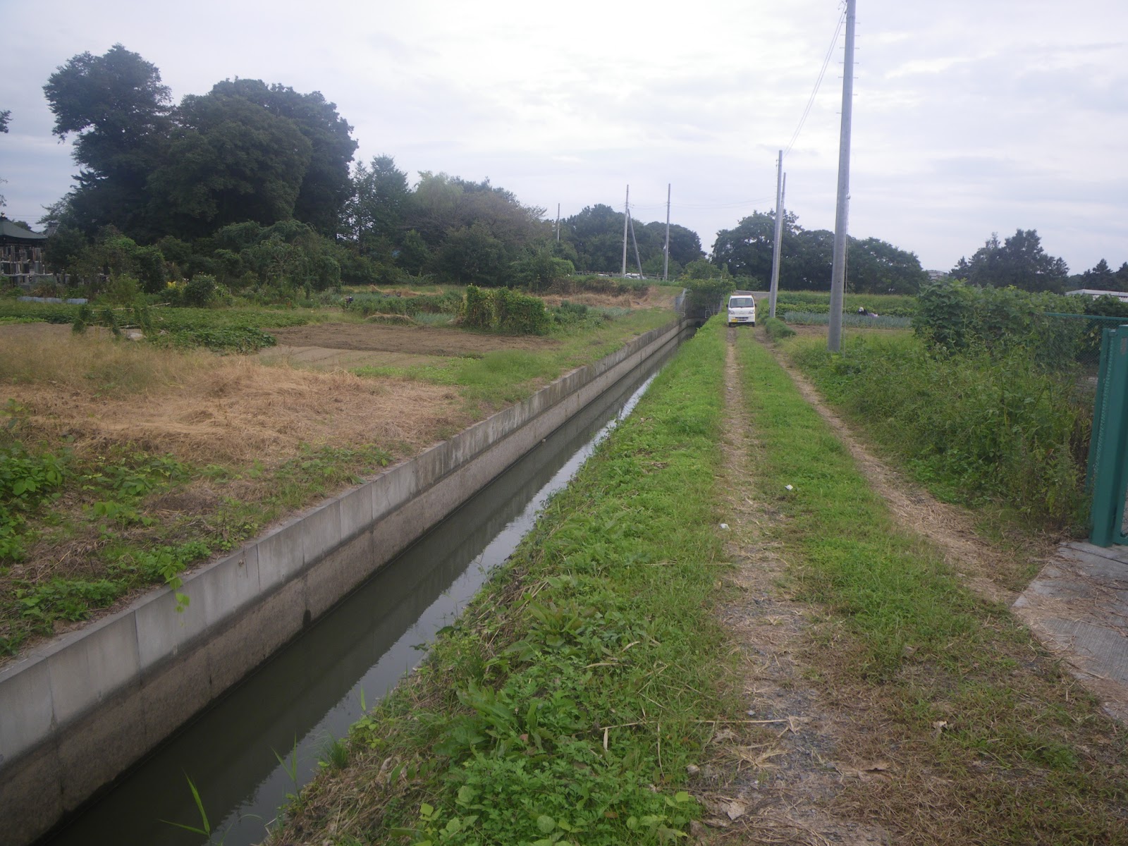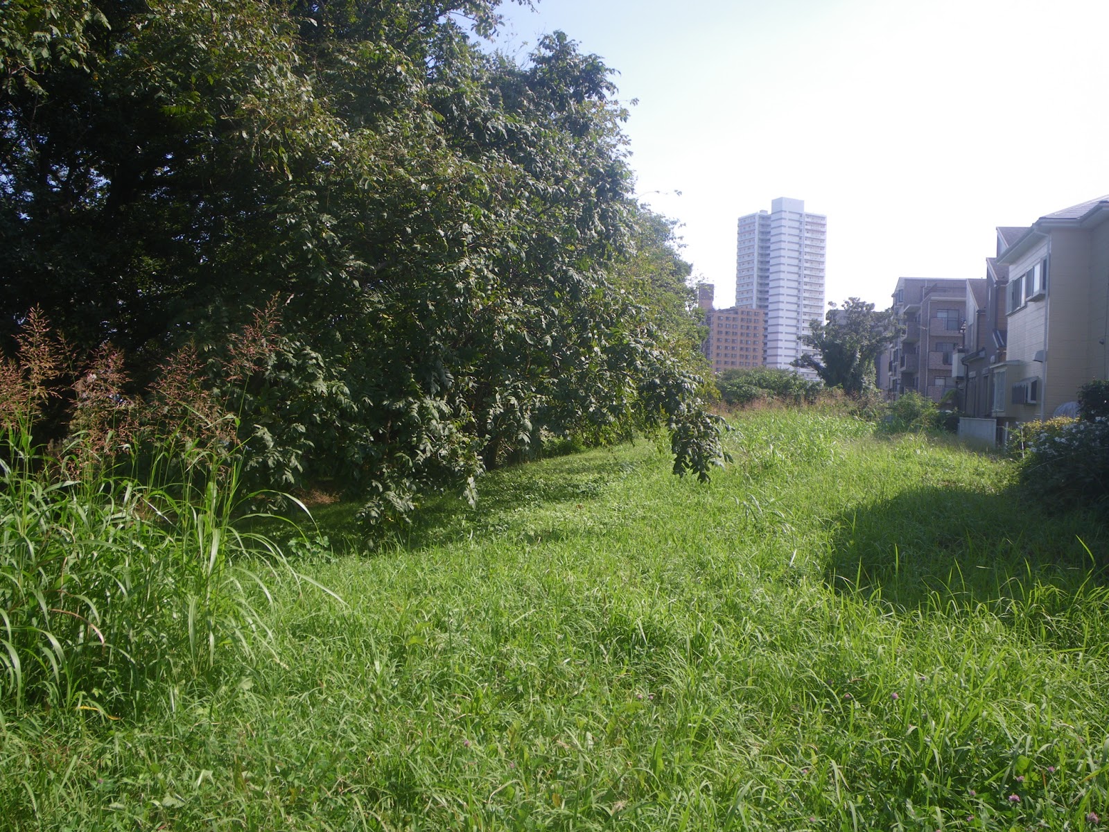 南平野排水機場南の如何にも暗渠らしき道を進むと、暗渠の趣はないのだけれど、水路跡を想起させるような緩やかな曲線を描く道に出る。道の左手には大光寺堤の緑が続く。往昔の水路跡ではないだろうか。