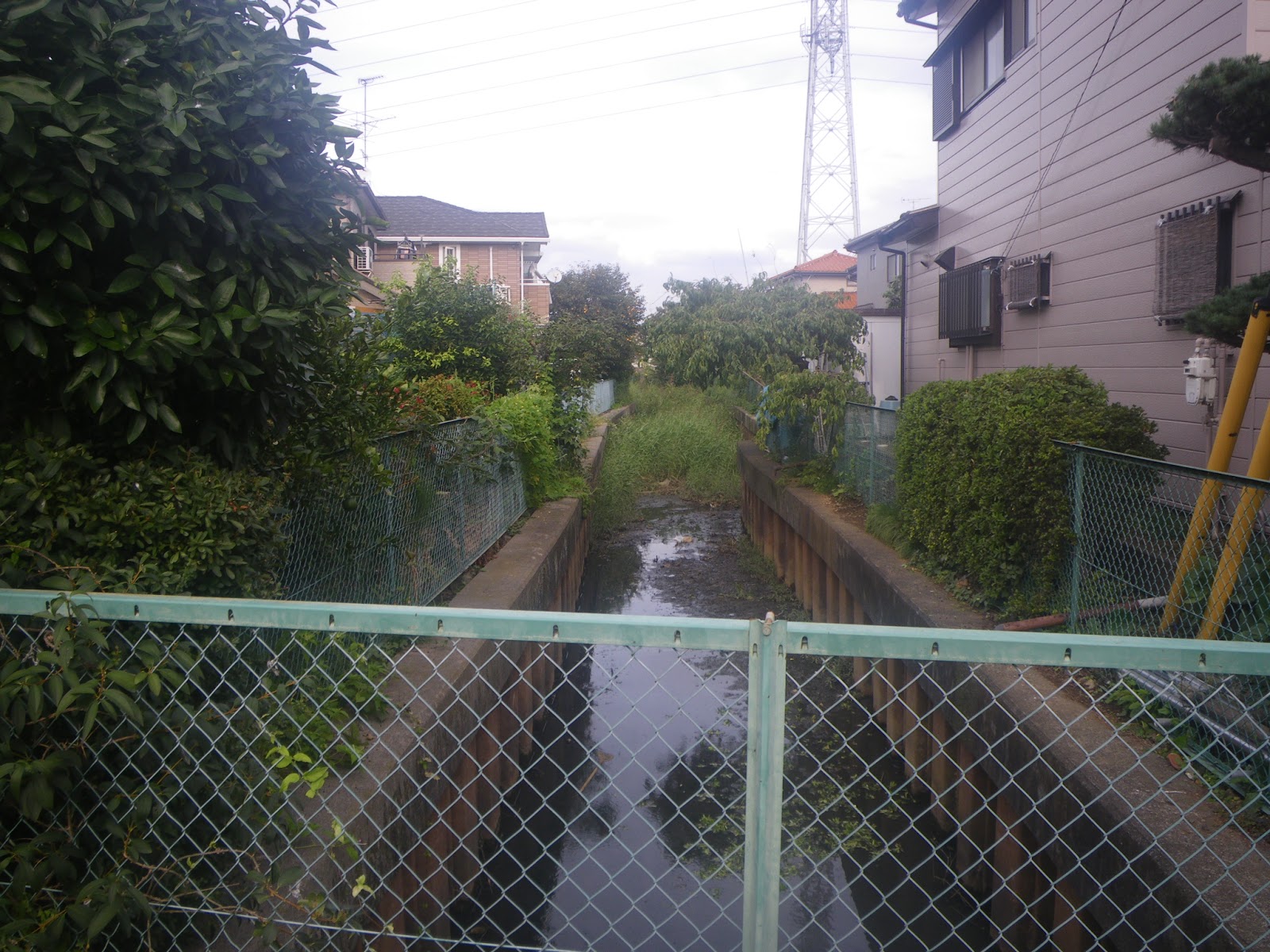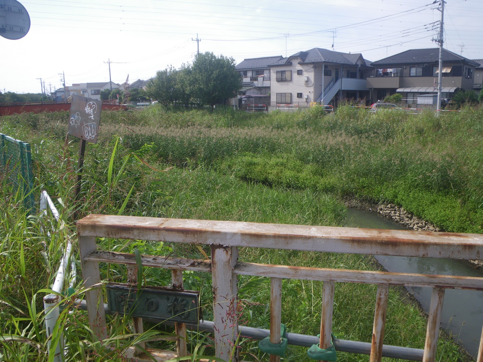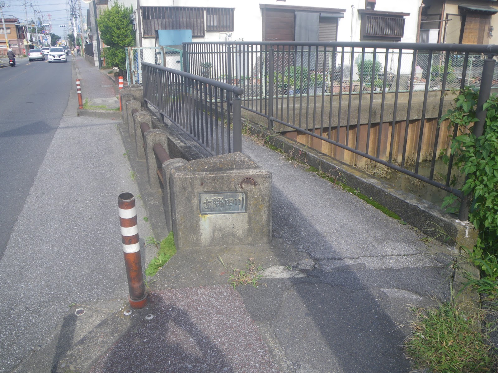 ひとつ上流に架かる川面橋を越える。水路の両側にはぎっしりと民家が並んでおり、水路に沿って辿ることはできない。成り行きで先に進み、東武野田線の踏み切を渡って南に進む。