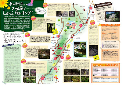 面河渓散歩の第一回は,面河への道の道すがら気になったあれこれでメモを終えた。今回は面河渓のメモ。当日は常の如く事前準備無し。成り行き面河山岳博物館手前、石鎚スカイラインが右に折れる手前の駐車場に車を停め,取りあえず歩を進め面河山岳博物館脇にある面河渓散策図でおおよそのルーティング。面河散策ルートは面河山岳博物館がスタート地点であった。