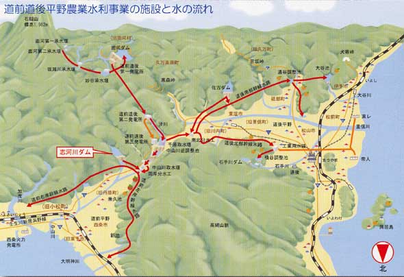 当日は砂防堰堤かな、などと思いながらもそのまま通り過ぎたのだが、メモの段階でその施設が先回メモした面河ダムに水を送る承水堰であることがわかった。面河ダムは水の少ない瀬戸内側に、分水嶺を越えて仁淀川水系の水を 送り利水・発電に供するダムであるが、そこに貯める水は仁淀川水系の三つの支流からも水を送る。面河第一承水堰もそのひとつである。
