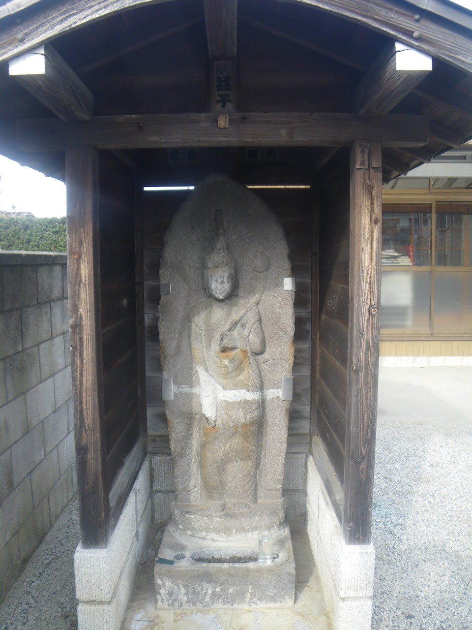 本堂にお参りし、先回見落とした山門傍の茂兵衛道標を確認。道標とともに「旅うれし只ひとすじ尓法の道(たびうれし ただひとすじに ほうのみち)との添歌が刻まれる。