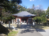 道なりに進むと薬師堂に出る。ここが神恵院(じんねいん)本堂であった観音寺西金堂。明治の神仏分離令の折、琴弾八幡宮より本地・阿弥陀如来画像(絹本著色琴弾八幡本地仏像)を移し琴弾八幡遇に替わり六十八番札所・神恵院(じんねいん)となった。