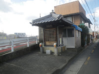 明治橋を渡るとすぐ、道は左右に分かれるが、左へ進む道の左手に汐入地蔵尊を祀るお堂がある。遍路道はこのお堂の前を進むことになる。