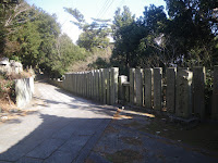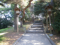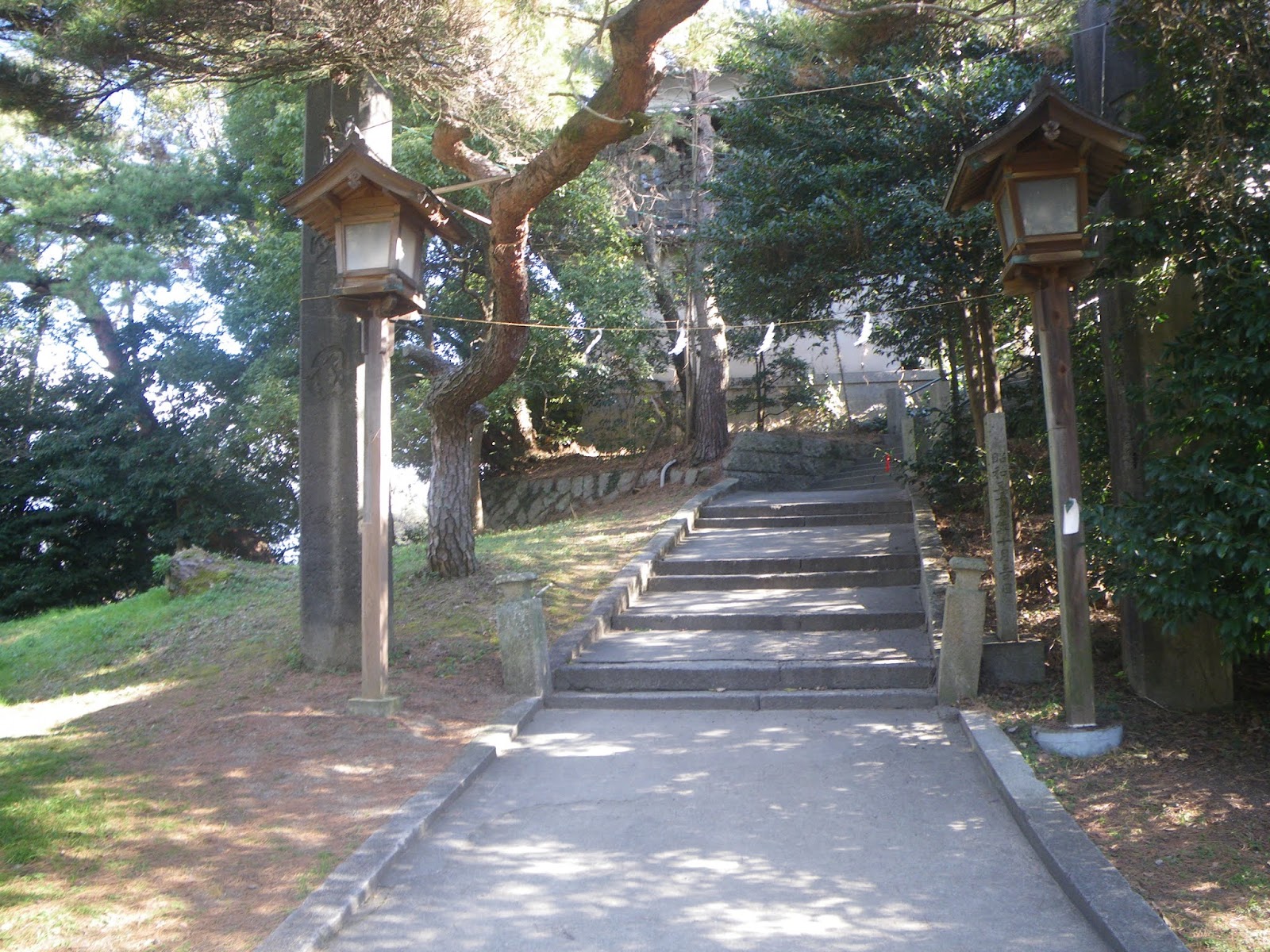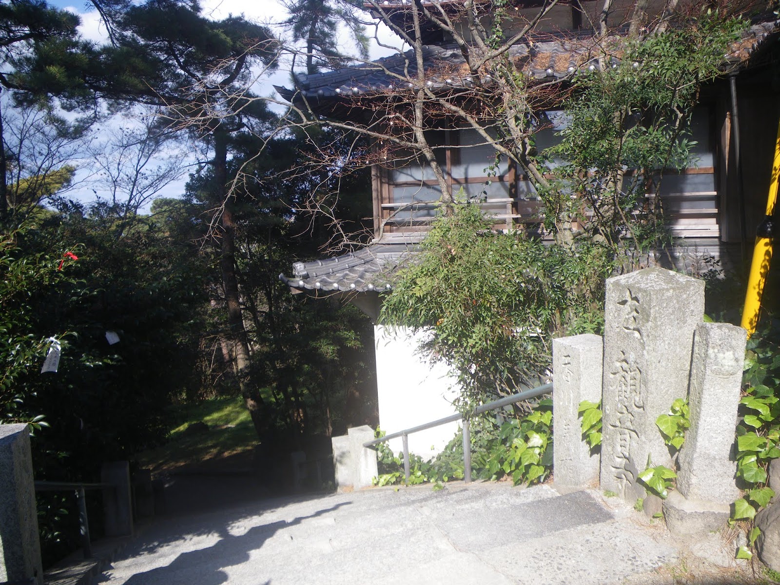 琴弾八幡から神恵院・観音寺には、本殿裏手にある石段を下りて進むことにする。特に道案内はないのだが、あってしかるべきとの判断故。本殿左手の社務所、展望台を過ごし本殿裏手まで進むと石段があった。