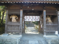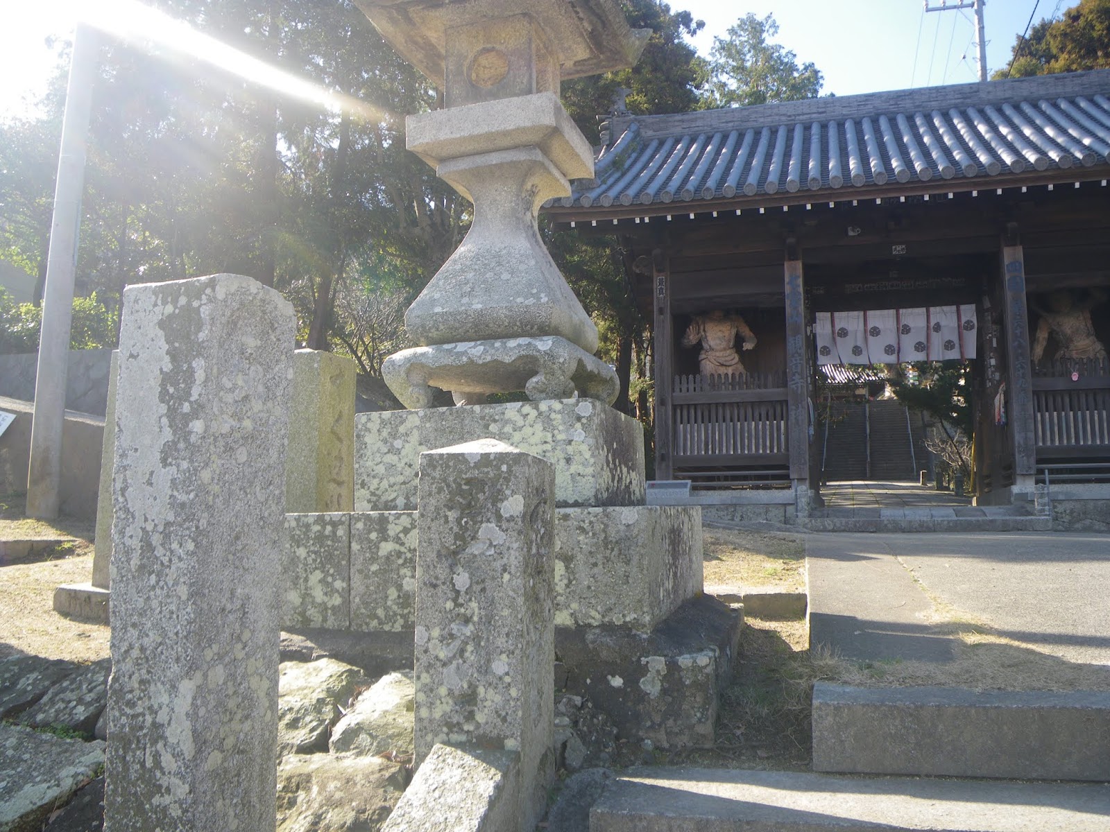 参道を進むと仁王門。仁王門の前、石段の下り口に2基の標石。1基は徳右衛門道標。「これ与本山寺一里」と刻まれる。本山寺は次の札所。もうひとつには「すぐ辺路道 文政十二己丑(つちのとうし)」と刻まれる。