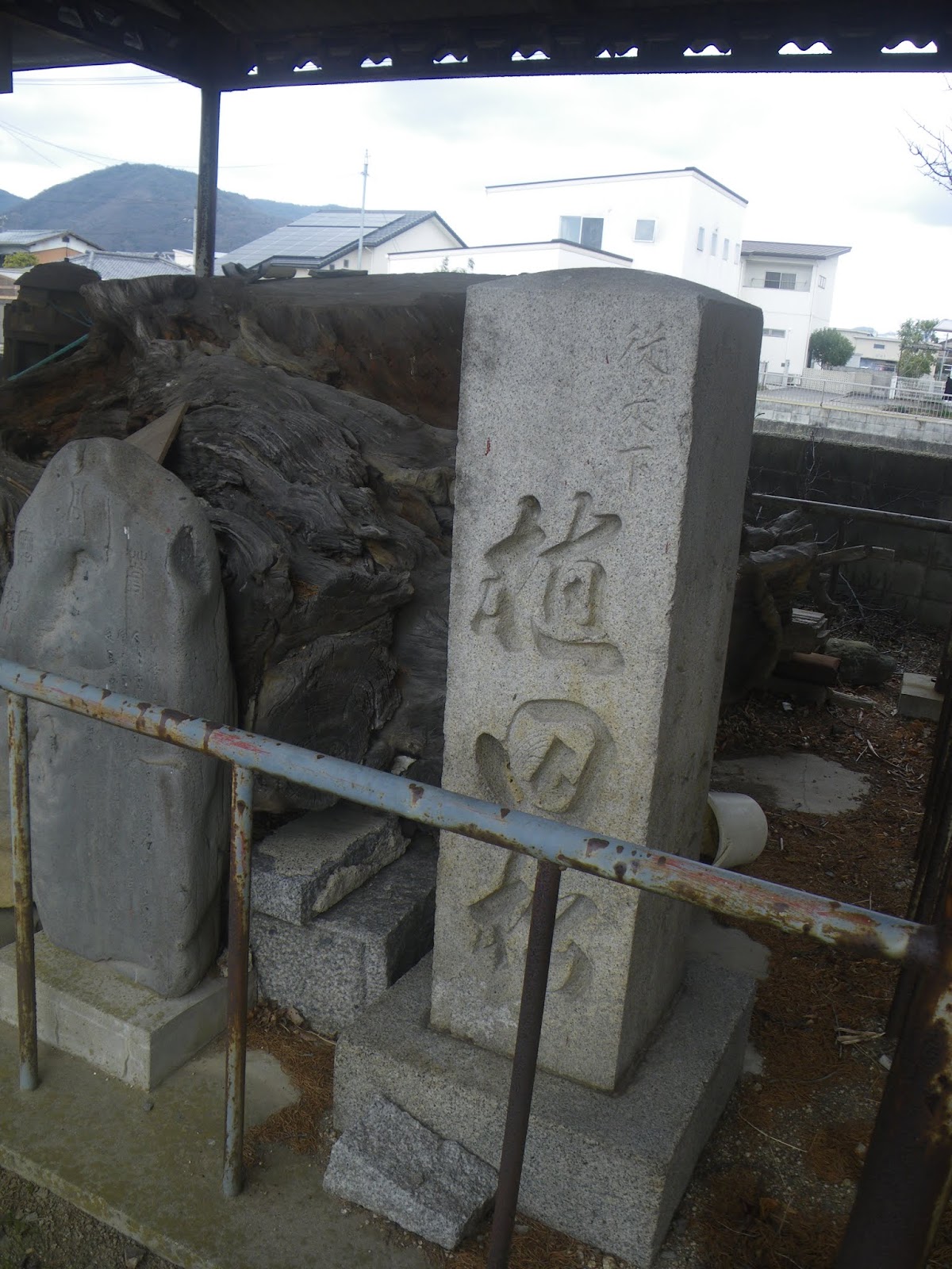水路に沿って少し進むと道の右手に植田天満宮。菅原道真お手植えの松で知られる。道真は仁和2年(886)、讃岐守(讃岐国司)を拝任し下向し、寛平2年(890)帰京する。