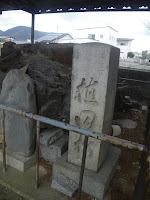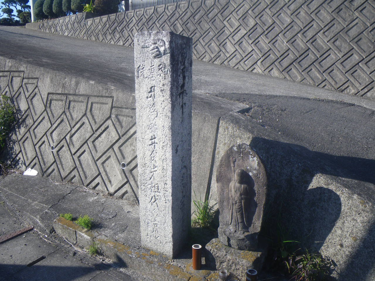 本堂右手を置奥に入るとコンクリート造りの開山堂がある。かつての東金堂。その先で琴弾山から観音寺へと下る道の上り口があり、そこに標石。「左 さいこく道 天保十三庚子」とある。境内に立つ観音像(西国三十三観音霊場)への道を指す。