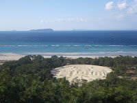 この山頂から眺めると円く見えますが実際は東西132メートル南北90メートルの楕円形となっています 以来砂上の一大芸術として長く保存されています。 この銭形を見た人は健康で長生きできて金に不自由しなくなるといわれています」とあった。