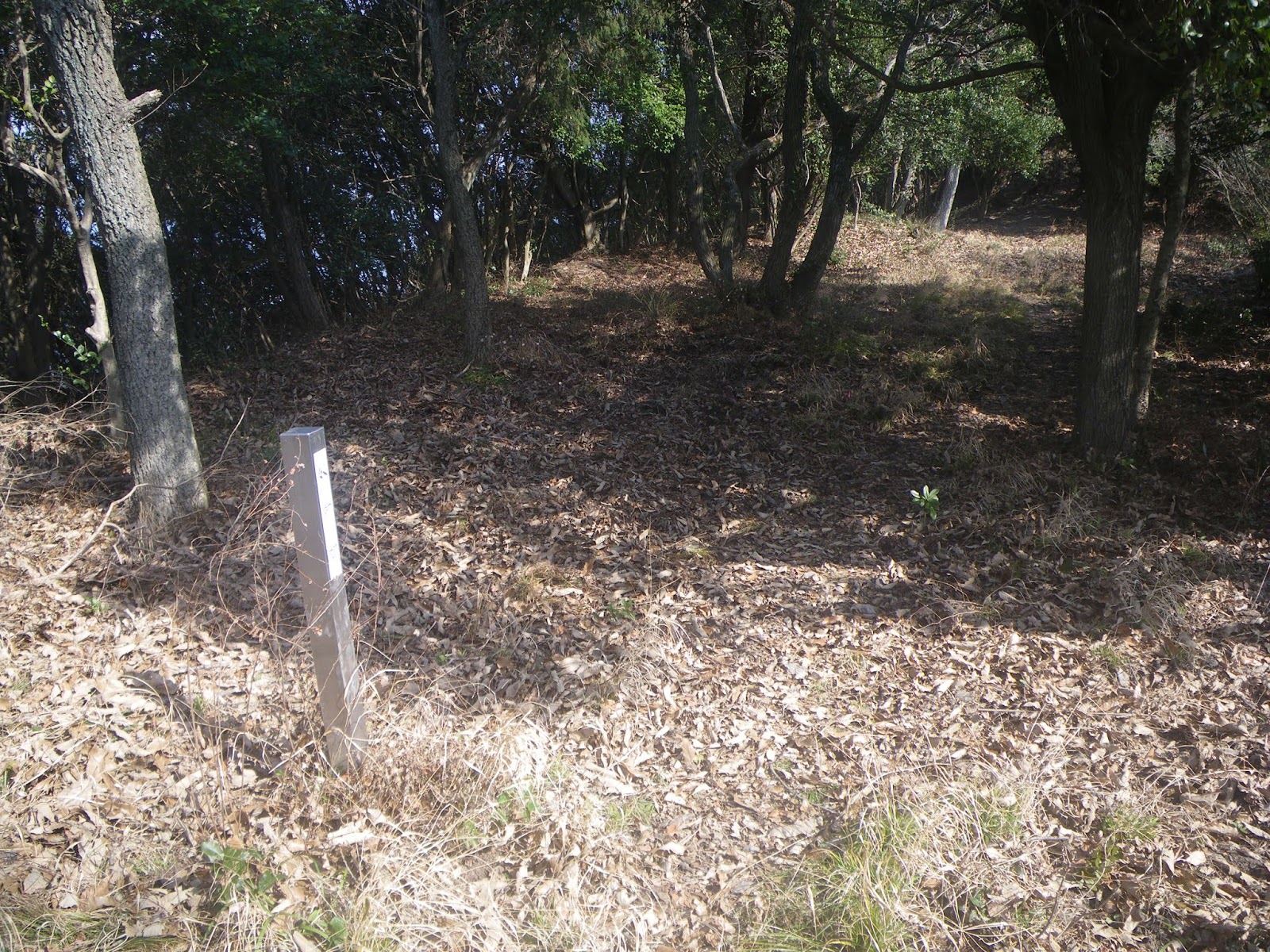 始めはよかったのだが、犬走り道は次第に踏み跡も消えてゆく。犬走り道には「井戸」にも出合えるとの案内もあり、すこし我慢し道なき道を進んだのだが、踏み跡が全く消えてしまった。峠越えは萌えるも、古城にそれほど萌えるわけでもないため、これ以上は勘弁と犬走り道を離れ尾根道に這い上がることにする。