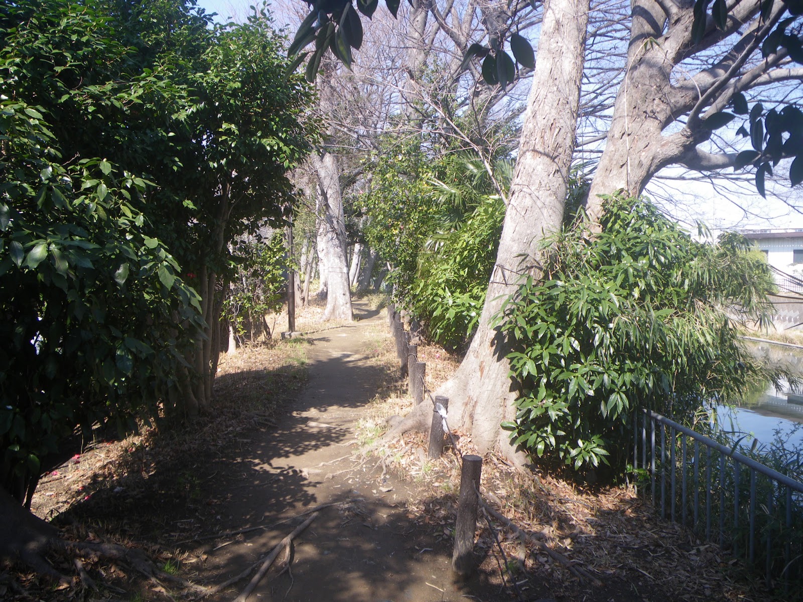 垳川の南岸に沿って続く神明六木遊歩道を先回の散歩の終了点、葛西用水が垳川に合流する地点に向かう。六木は中川に接する地区名、神明は綾瀬川に接する地区名である。