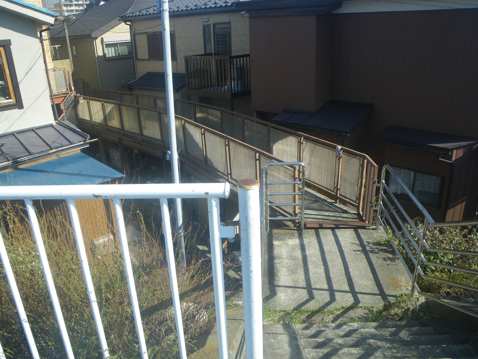 古利根川散歩を終えたが、先ほどの奇妙な送電線が気になり、中川左岸に移る。堤防沿いの民家にはMY Approachといった通路が道から玄関へとつながっているものが多い。洪水対策で堤防が高く、低地に建つ民家との高低ギャップがその因だろうか。