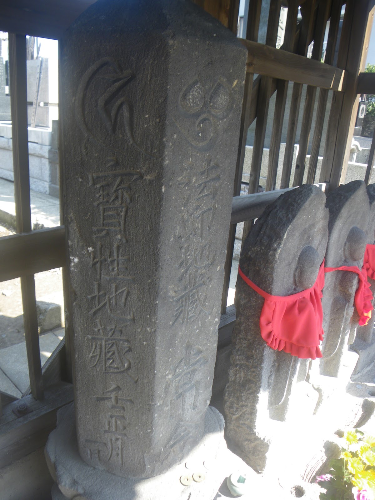 境内には、石像物としては非常に珍しい石造六面幢六地蔵をふくむ地蔵群がある。また、高さ25mのイチョウの木は、樹齢およそ三百数十年といわれている。(後略)足立区教育委員会掲示」とあった。