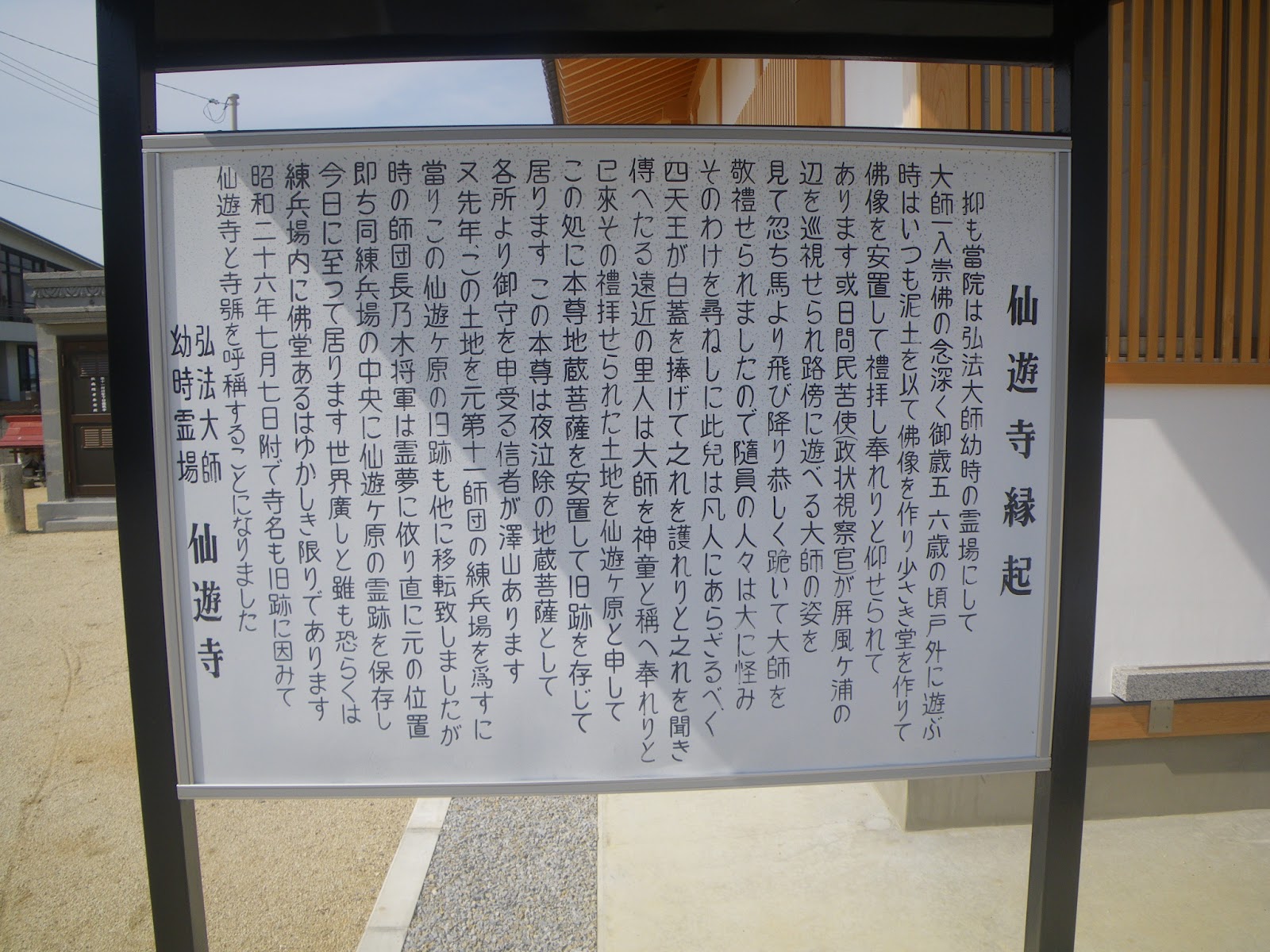 境内入り口には「弘法大師幼児霊場 仙遊寺」とある。お堂の傍にあった案内は昭和の半ばころに書かれたもののようで、今風にまとめてみる。