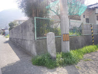 また昔の記事には、山門へは瑠璃光橋という石橋を渡ったという。その石橋だが、善通寺第十一師団の火薬庫があったという現在の駐車場に、唐突な感じで3基の石柱が並べられていた。確かめたわけではないのだが、いかにもかつての石橋らしき「雰囲気」を醸し出していた。